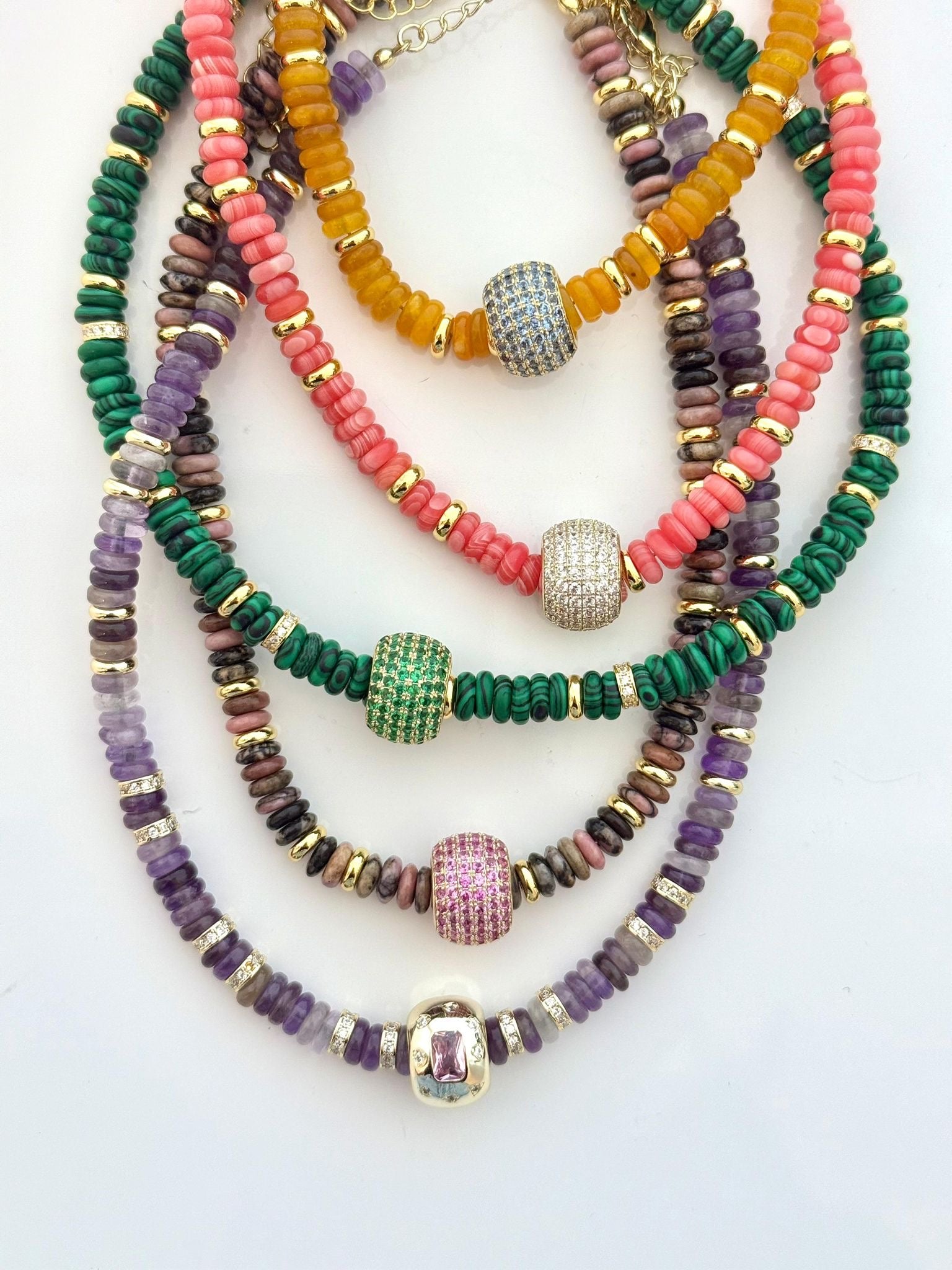 ¡Mejora tu encanto con este elegante dije espaciador! Diseñado para añadir un toque de elegancia y alegría, mantiene tus dijes alineados y en perfecto orden, a la vez que realza el aspecto general de tu conjunto.