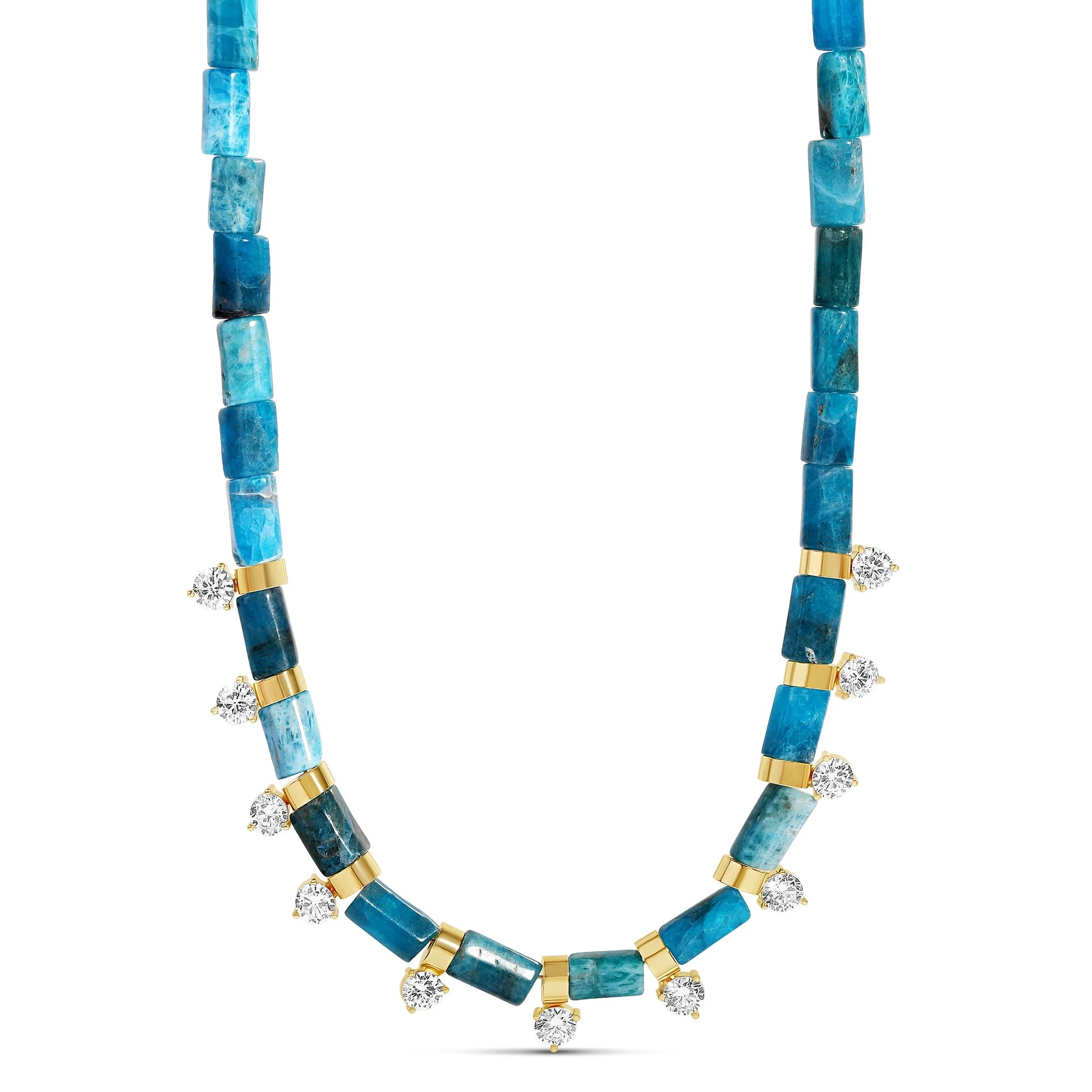 Inspired by clear waters and sunlit horizons, the Aqua Jade Spike Necklace shines with vivid blue stones, 18K gold-plated details, and delicate CZ accents. Its bold yet graceful design captures the essence of seaside luxury — radiant, modern, and effortlessly elegant.